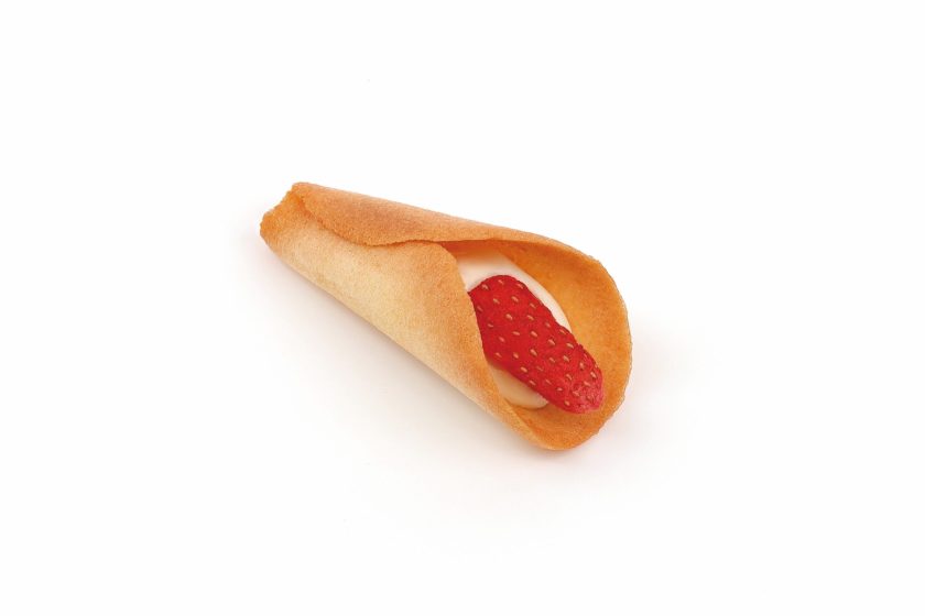 記念日の花束を、ひとりひとりに小さなブーケでおすそわけ。そんな優しいしあわせ感がひろがる焼き菓子「グレイシア」が人気です。ミルキーなクリームと甘酸っぱいいちごを口どけのよいチュイールで巻きました。