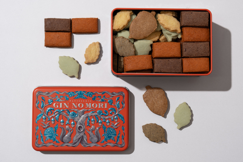 「パティスリー GIN NO MORI」のクッキー缶は、東京駅丸の内駅舎の赤レンガをイメージした2種類のクッキーと、森をイメージした3種類の木の葉型のクッキーをオリジナルカラーのデザイン缶にアソート。リスのキャラクターの『チェスとナッツ』が木の葉の中でかくれんぼをして遊んでいる姿をイメージした木の葉型のクッキーの中には、どんぐりとリスの形のどんぐり粉でつくったクッキーが隠れており、見た目だけでなく味でも“森の恵み”を感じられそうです。