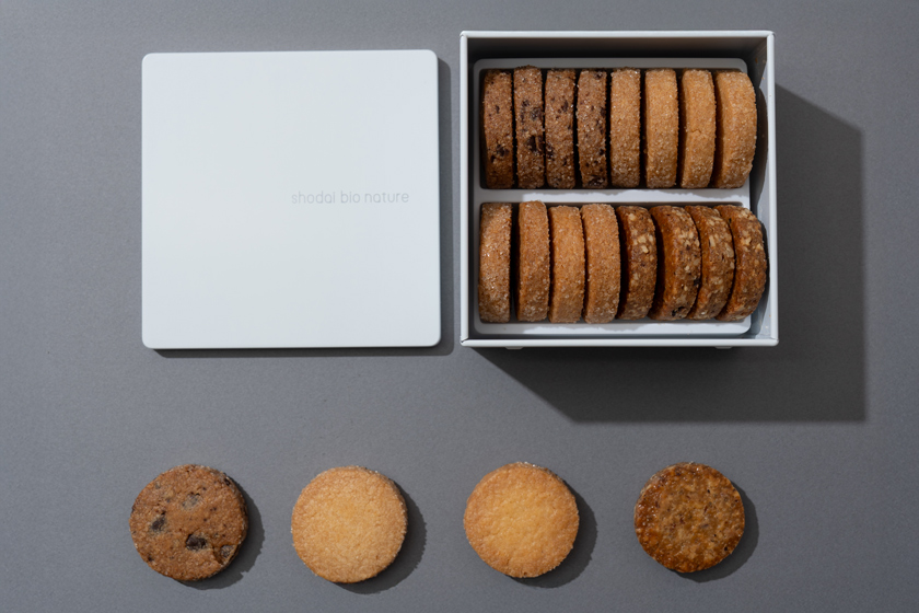 厳選した素材で仕立てたスイーツが楽しめるパティスリー「shodai bio nature」。『フランス風サブレ詰め合わせ』は、フランス語で“砂”を意味するサブレのその名の通り、口の中でサラサラと崩れるような軽い食感が特徴。ココナッツの優しく、どこか懐かしい風味を楽しめる『ココナッツのサブレ』や、アーモンドの風味とバニラが優しく香る『パリ風のサブレ』など異なる味わいが4種類。シンプルな白のパッケージのクッキー缶は男女問わずお渡ししやすいのも嬉しいポイントです。