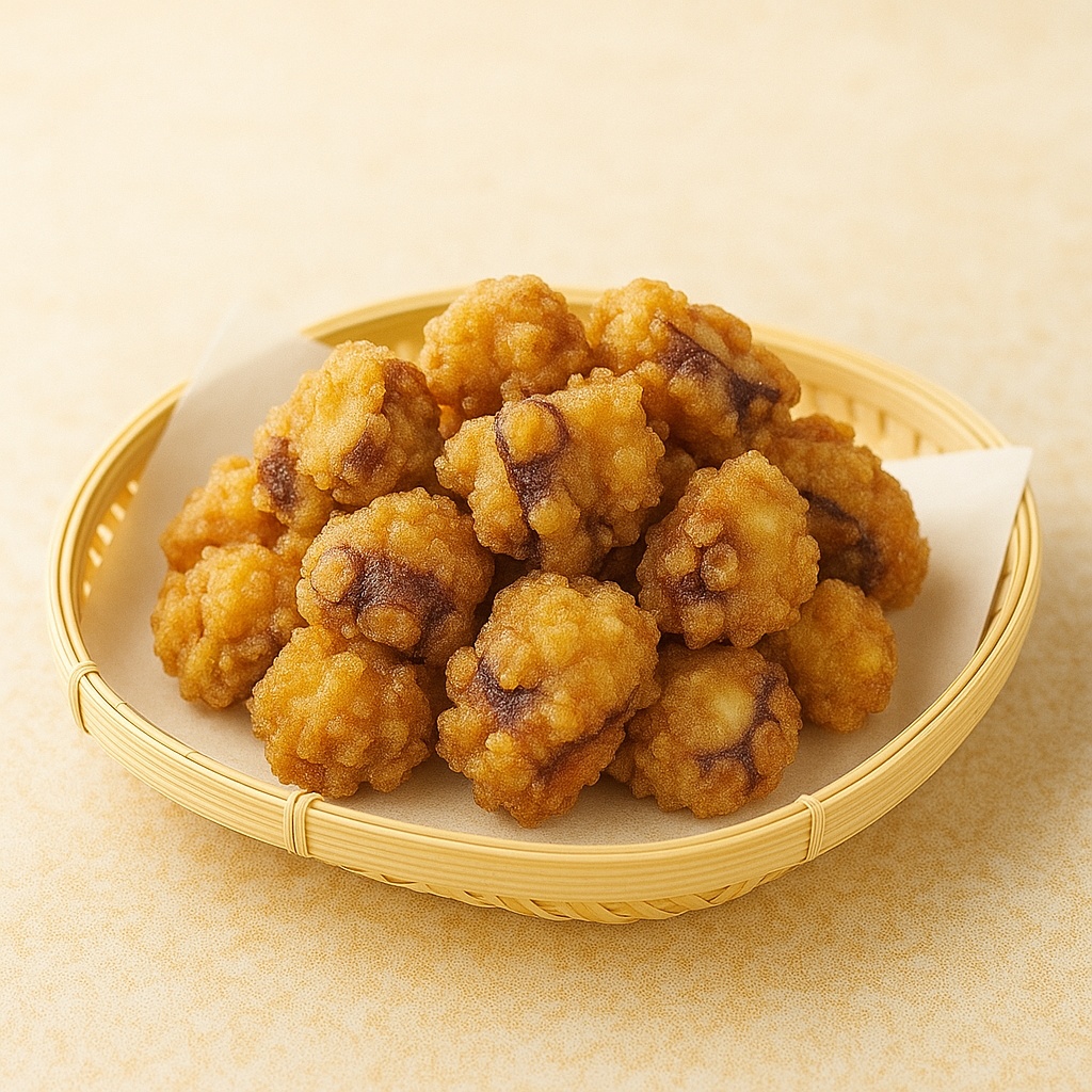 新鮮なタコを香ばしく揚げた、旨味たっぷりの唐揚げです。プリッとした弾力とジューシーな味わいが楽しめ、噛むほどに広がる海の風味がクセになります。おつまみやおかずにもぴったりな人気の一品です。