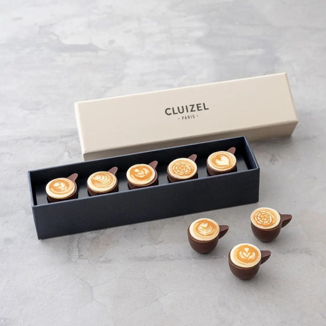 中身はカファレルの代名詞、濃厚なヘーゼルナッツの風味が楽しめる「ジャンドゥーヤ」や、幸運を運ぶ「ユーロコイン」など。