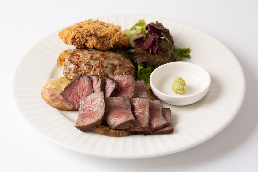 金格ハンバーグ・薫格肉・熟成肉を盛り合わせた『格之進三昧』にメンチカツも追加した、『超格之進三昧(4,780円 / 税込)』は肉の日だけの特別商品です。