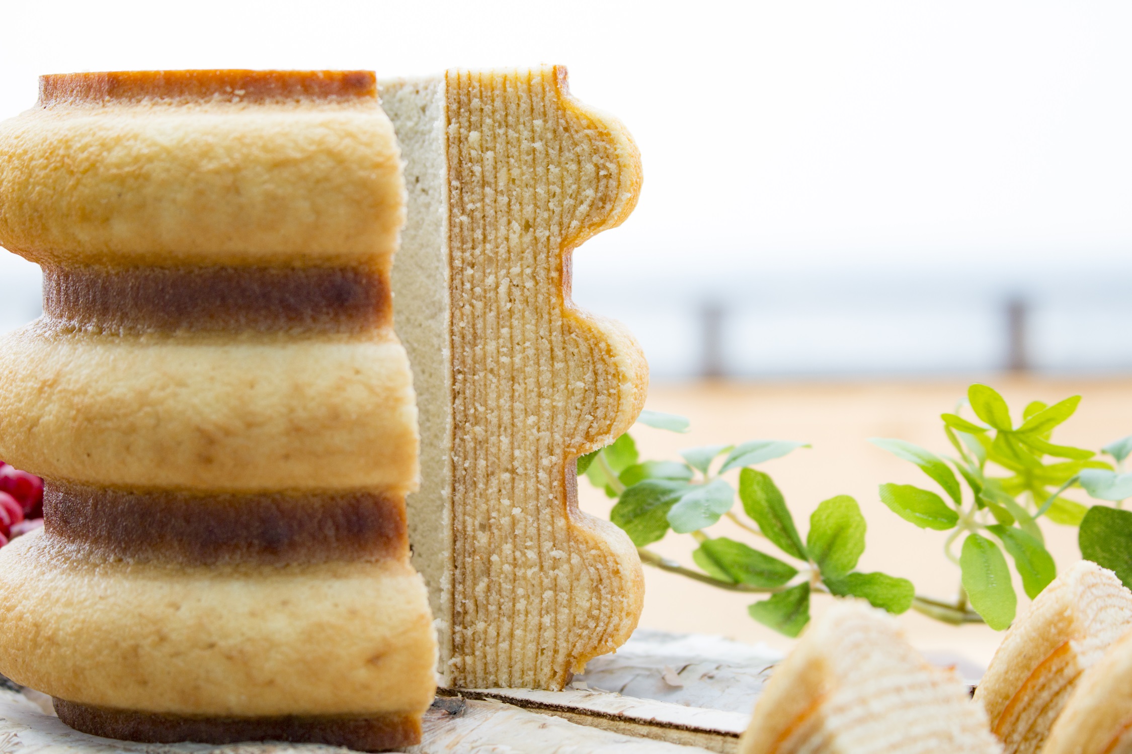 ギザギザとした鋸山を象った特徴ある形で、卵や牛乳、地元素材にこだわった、濃厚で素朴な昔ながらのバウムクーヘンをぜひお試しください。