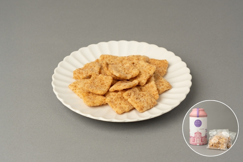 新しいおかきの食べ方を提案する「きりのさか by Chuoken Senbei」。サクサクとした軽やかな食感の『玄米ちっぷす 玉ねぎ』は、玄米100%の生地を米油でカラッと揚げ、玉ねぎの優しい甘さと風味が楽しめます。手土産なら缶に東京駅丸の内駅舎が描かれた掛け紙を巻いた限定パッケージ、自分用のおやつならスタンドパック(缶なし/袋入り)と、用途に合わせて購入できるのも嬉しいポイント。また玄米ちっぷすは他にも、えびの濃厚なうまみを詰め込んだ『桜えび』、チーズの香ばしさが楽しめる『パルミジャーノレジャーノ』のフレーバー違いもあるので、手土産にするなら他のフレーバーと組み合わせることもできます♪