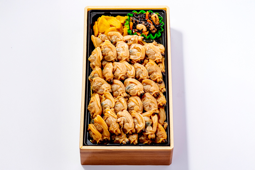 見た目にもインパクトのある、たっぷりとのった「あさり」の深川弁当。オープン時から15年以上も愛され続ける、不動の人気商品です。あさりは毎日ショップで煮て、お弁当に合うように煮る時間をかけ過ぎず、煮た後に1日かけてじっくり味を染み込ませて、ふっくらと仕上げています。