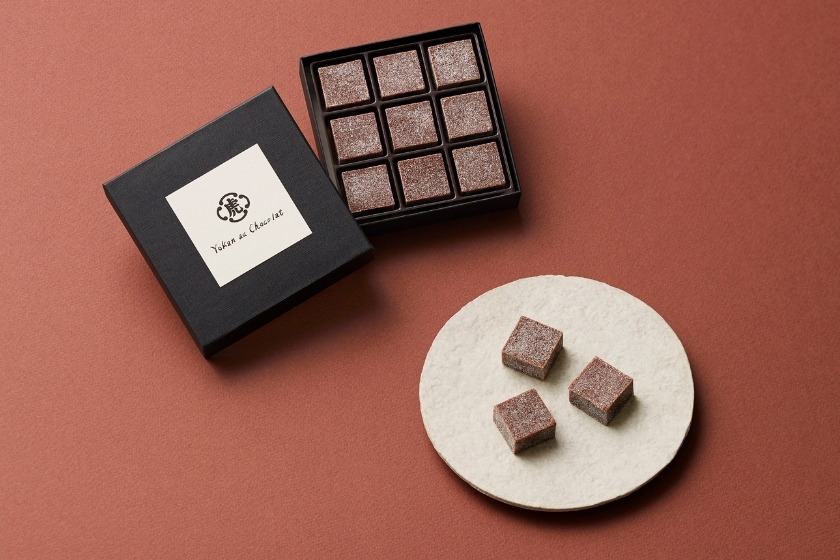 「カカオ」と「小豆」の風味が一体となった、ひとくちサイズの羊羹です。カカオのもたらす奥行きある味わいと、すっきりとした後味のよさをお楽しみいただける、モダンな一品です。